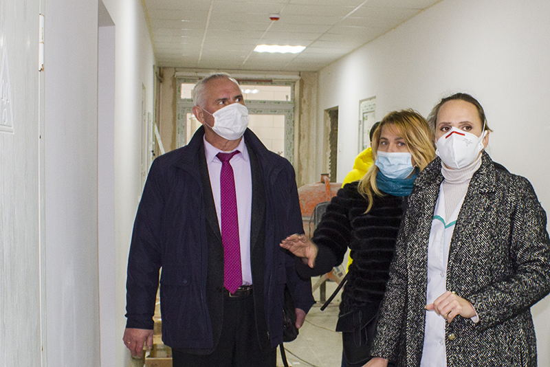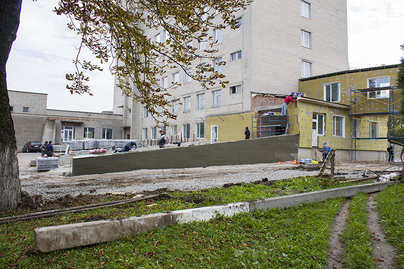 Вже збудована галерея, яка сполучає хірургічний та терапевтичний корпуси, майже завершені внутрішні роботи у відділенні. Для транспорту, який привозитиме хворих, збудували заїзд. На прилеглій території вкладають бруківку.