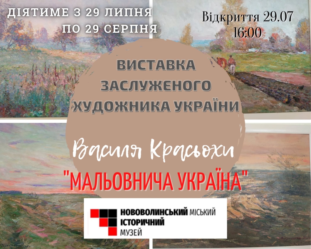 З 29 липня по 29 серпня у Нововолинському міському історичному музеї діятиме виставка картин заслуженого художника України Василя Красьохи “Мальовнича Україна”.