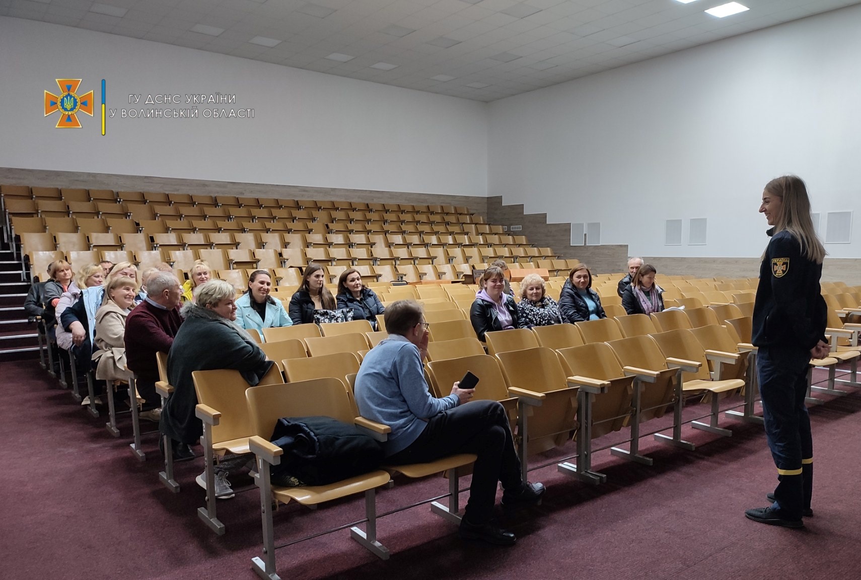 Співробітники Володимирського РУ вкотре провели «Єдиний урок безпеки» для здобувачів освіти та керівників гуртків Володимирського району з метою безпечного навчального середовища в умовах війни. Під час заходу рятувальники розповіли про правила поводження під час сигналу «Повітряна тривога», про мінну та пожежну безпеку. Також була проведена тренувальна евакуація присутніх дітей з приміщення закладу ліцею до первинного укриття. Також співробітники ДСНС роз’яснили алгоритм укриття в захисних спорудах цивільного захисту, правила поведінки в укритті, який повинен бути вміст “рюкзака безпеки”.