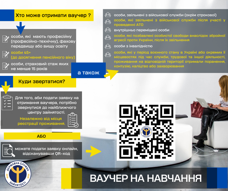 Служба зайнятості допомагає українцям не лише знайти роботу, але й освоїти нові професії та спеціальності на ринку праці. Як це зробити? Легко! Потрібно скористатися ваучером на навчання.