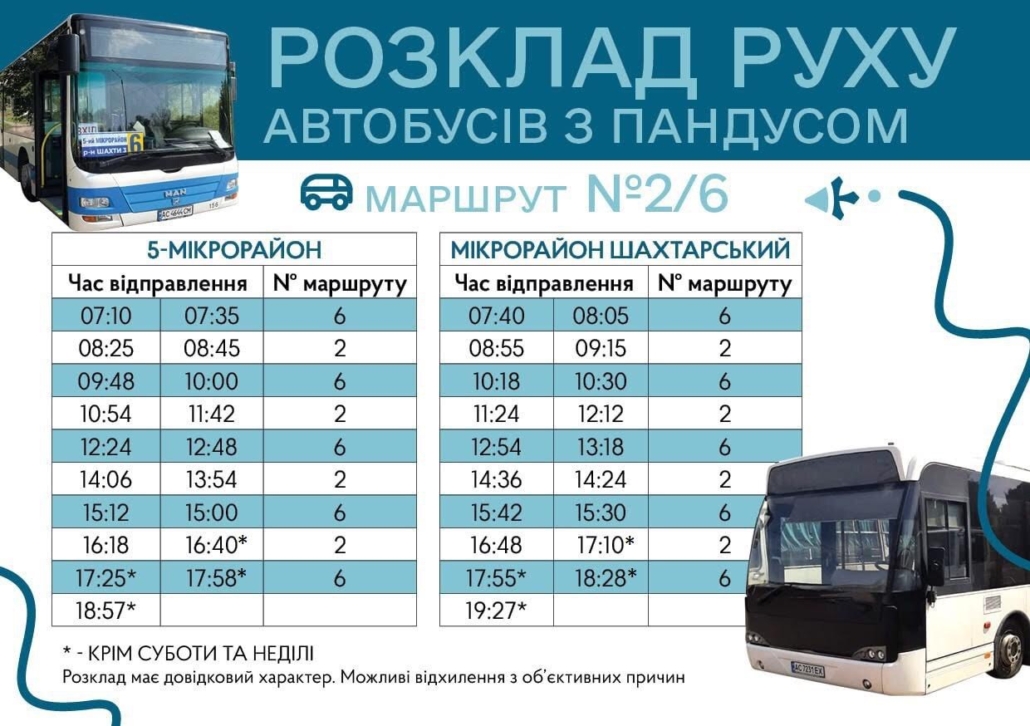 З 2 жовтня у Нововолинську на маршруті №2 та №6 за фіксованим графіком курсуватиме великий сучасний автобус, обладнаний пандусом.