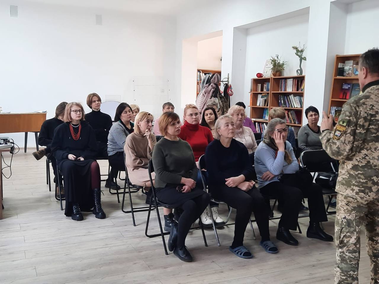 27 лютого в приміщенні Нововолинської центральної бібліотеки відбулося навчання з основ національного спротиву. Його провів інструктор Віктор Поліщук. Декілька десятків мешканців охоче взяли участь і отримали базові військові навички.