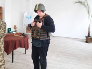 Під час заняття інструктор розповів про тактичну підготовку, виконання бійцями своїх бойових обов’язків та основи тактичної медицини. Учасники мали змогу одягнути каску, бронежилет, ознайомитися з будовою автомата.