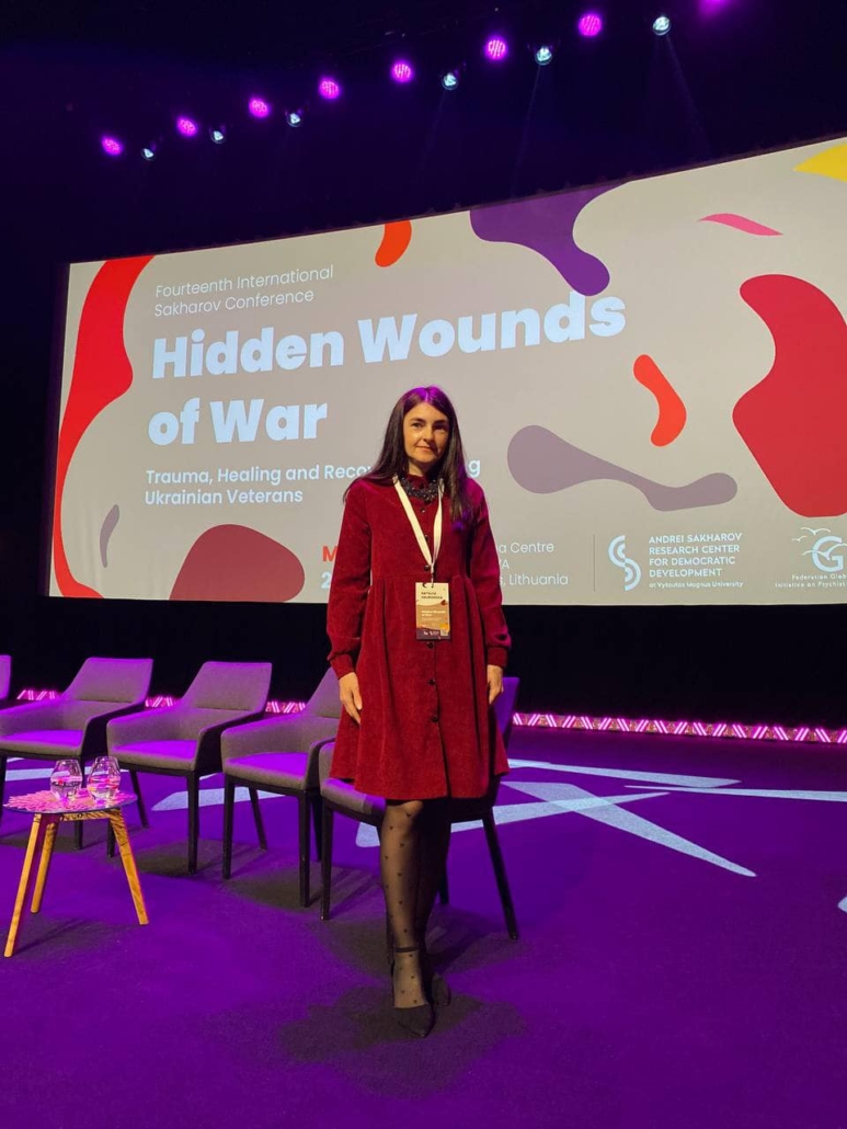 Нещодавно психолог Центру Наталія Гавронська відвідала міжнародну конференцію у литовському місті Каунас під назвою «Приховані рани війни – травма, зцілення та відновлення серед українських ветеранів». У програмі були тренінги та воркшопи, де своїми знаннями з аудиторією поділилися видатні фахівці з Канади, Великобританії, США, Данії, Нідерландів, Чехії, Польщі, Грузії та України. Проводили огляд найсучасніших реабілітаційних програм та ініціатив, аби допомагати українцям впоратися з катастрофічними наслідками війни.