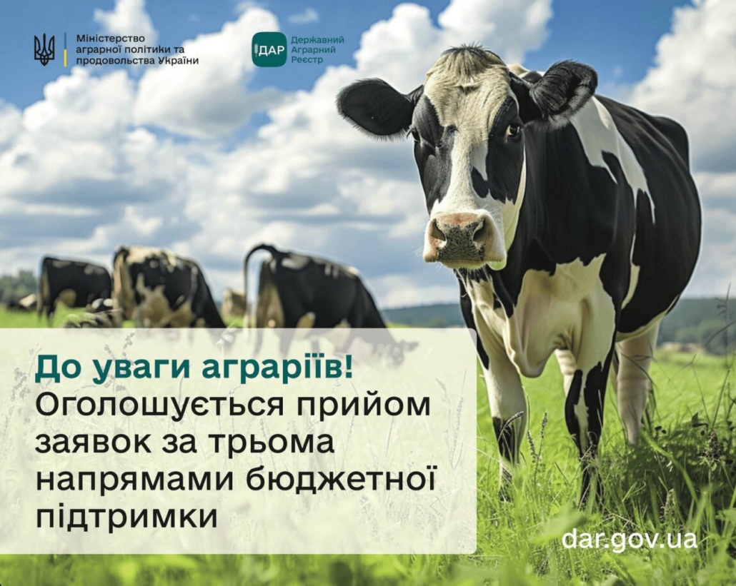 27-го червня, о 10 годині в Державному аграрному реєстрі розпочнеться прийом заявок на спеціальні бюджетні дотації для утримання корів, кіз та/або овець: