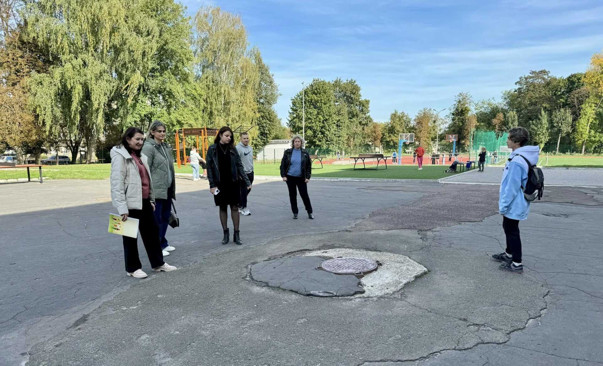 Перша група під керівництвом заступниці начальника управління освіти Вікторії Римарчук оглянула міський парк культури та відпочинку, територію центральної лікарні, частину мікрорайону Шахтарського та подвір’я ліцею №8.