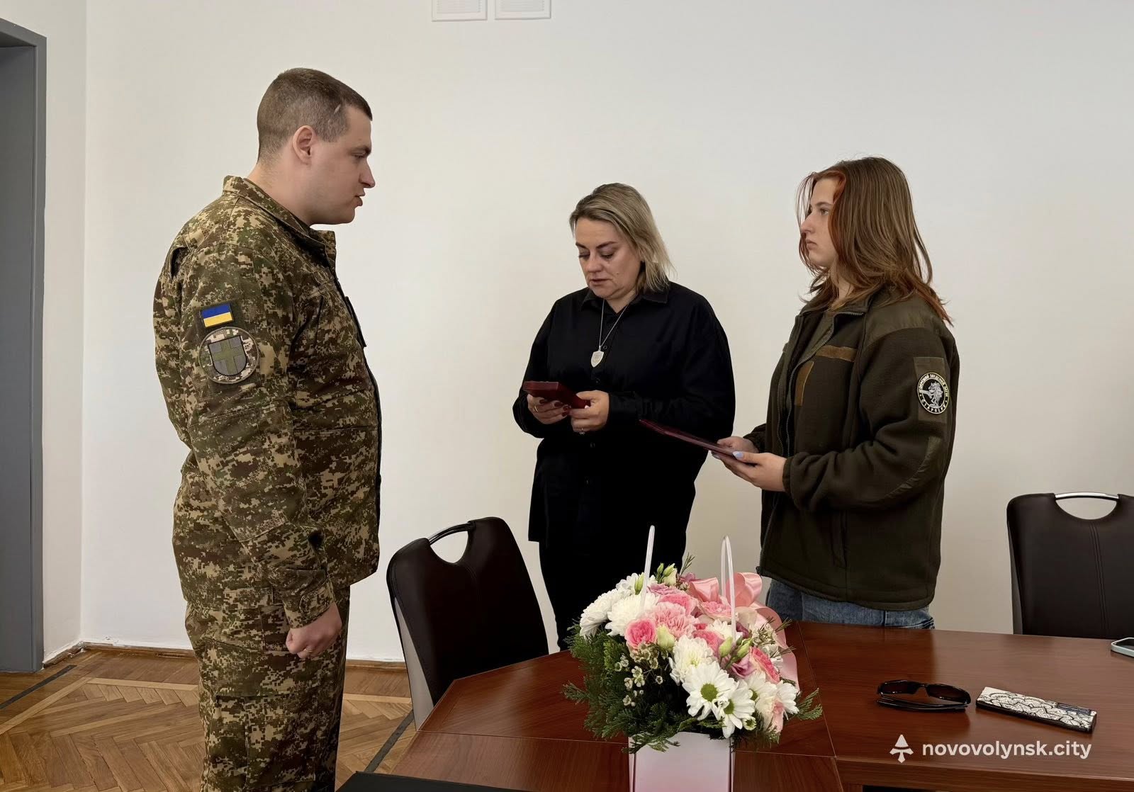 8 травня військовослужбовці Національної гвардії України вручили Орден «За мужність» III ступеня (посмертно) дружині та доньці загиблого Захисника Дмитра Громова з Нововолинська.