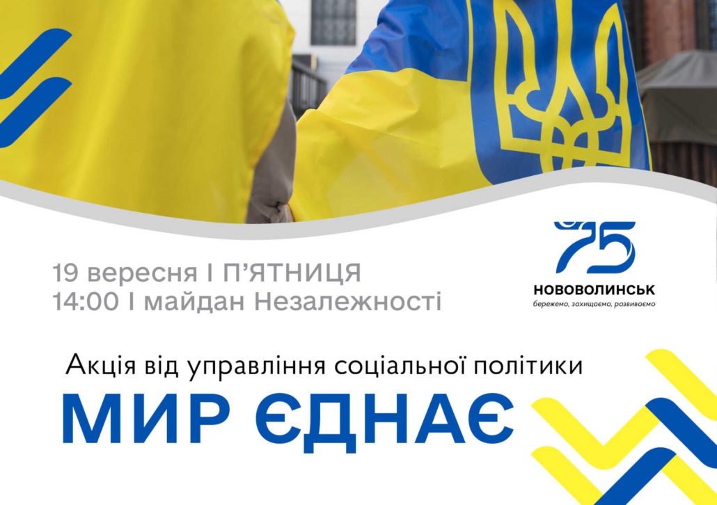 19 вересня о 14:00 запрошуємо усіх охочих долучитись до акції «Мир єднає». Захід організовує управління соціальної політики.