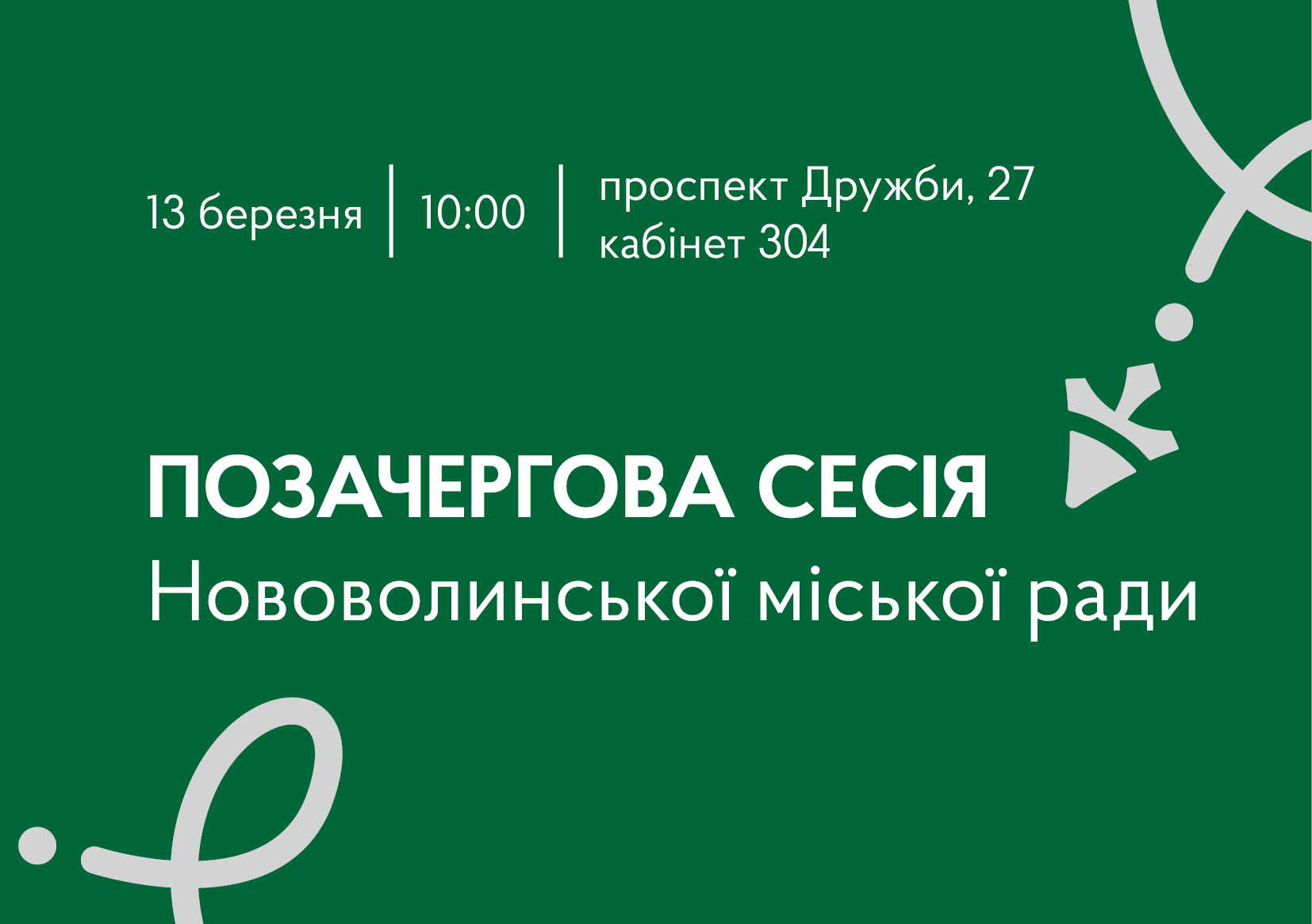 У п’ятницю, 13 березня, о 10:00 в залі засідань міської ради (каб. № 304) відбудеться пленарне засідання позачергової 57-ї сесії міської ради.