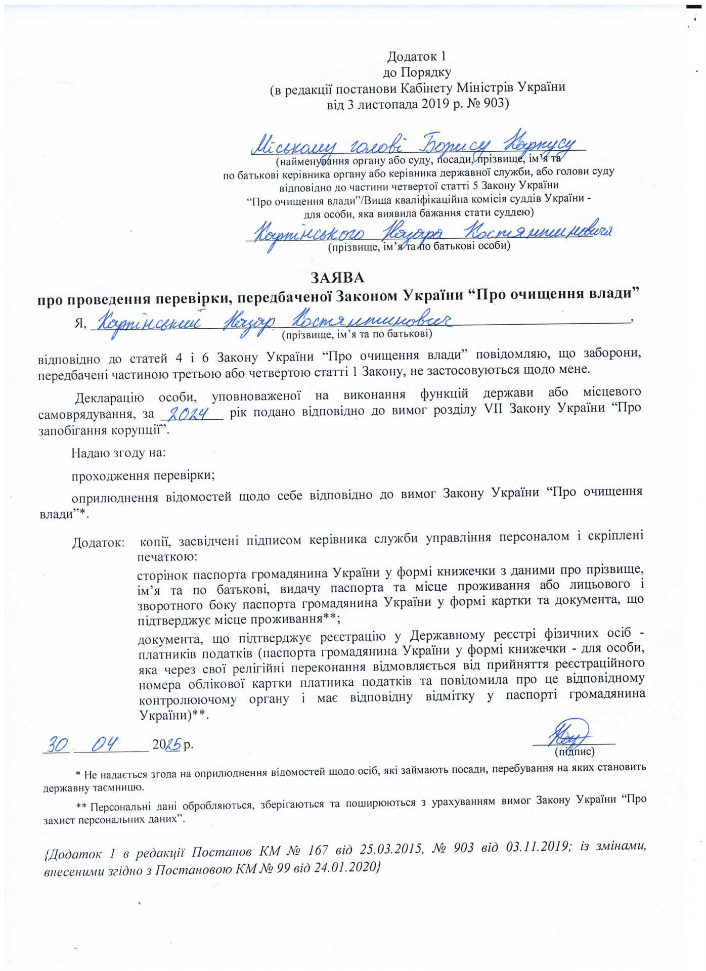 - ПОРЯДОК проведення перевірки достовірності відомостей щодо застосування заборон, передбачених частинами третьою ічетвертою статті 1 Закону України “Про очищення влади”